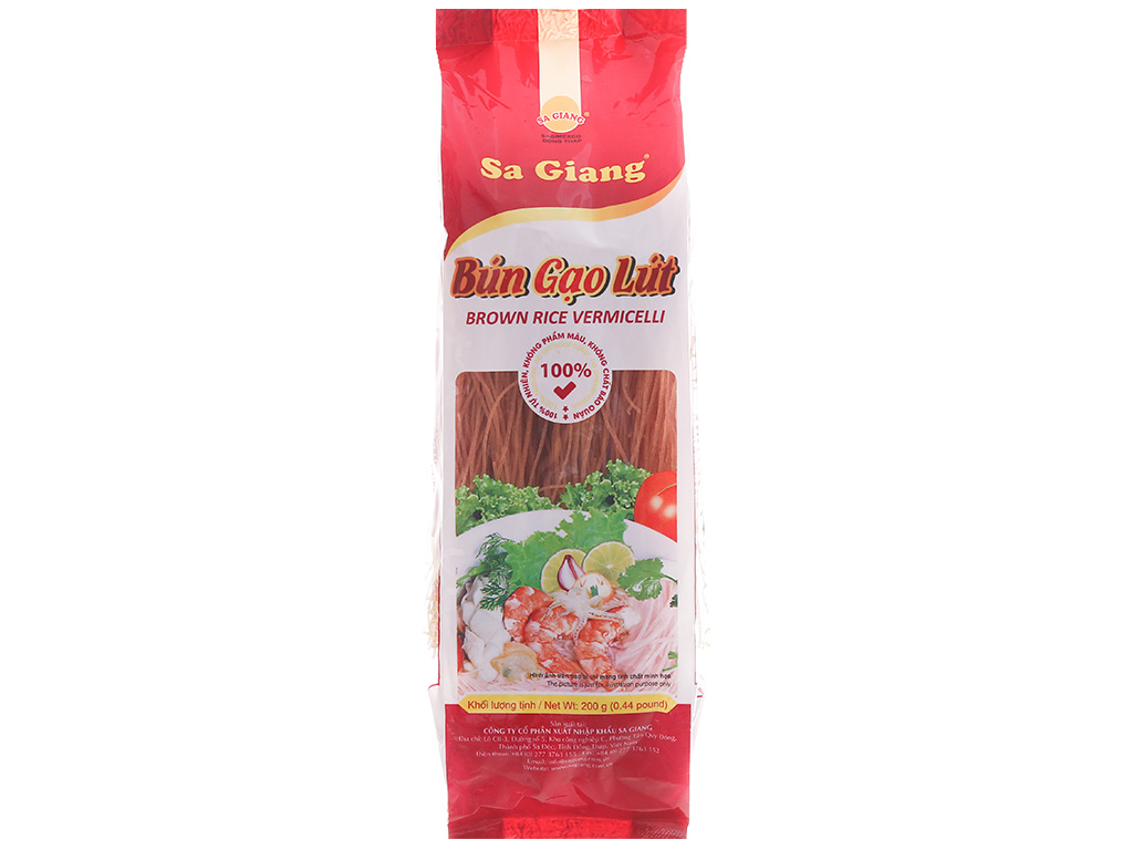 Sợi bún gạo tròn, nhỏ, màu nâu được làm từ gạo lứt dinh dưỡng. Bún gạo lứt Sa Giang gói 200g rất đa dạng trong chế biến, có thể dùng cho các món nước, xào, trộn,… vô cùng ngon. Bún gạo Sa Giang chất lượng, tiện lợi, dễ bảo quản, là sản phẩm nên có trong mọi căn bếp