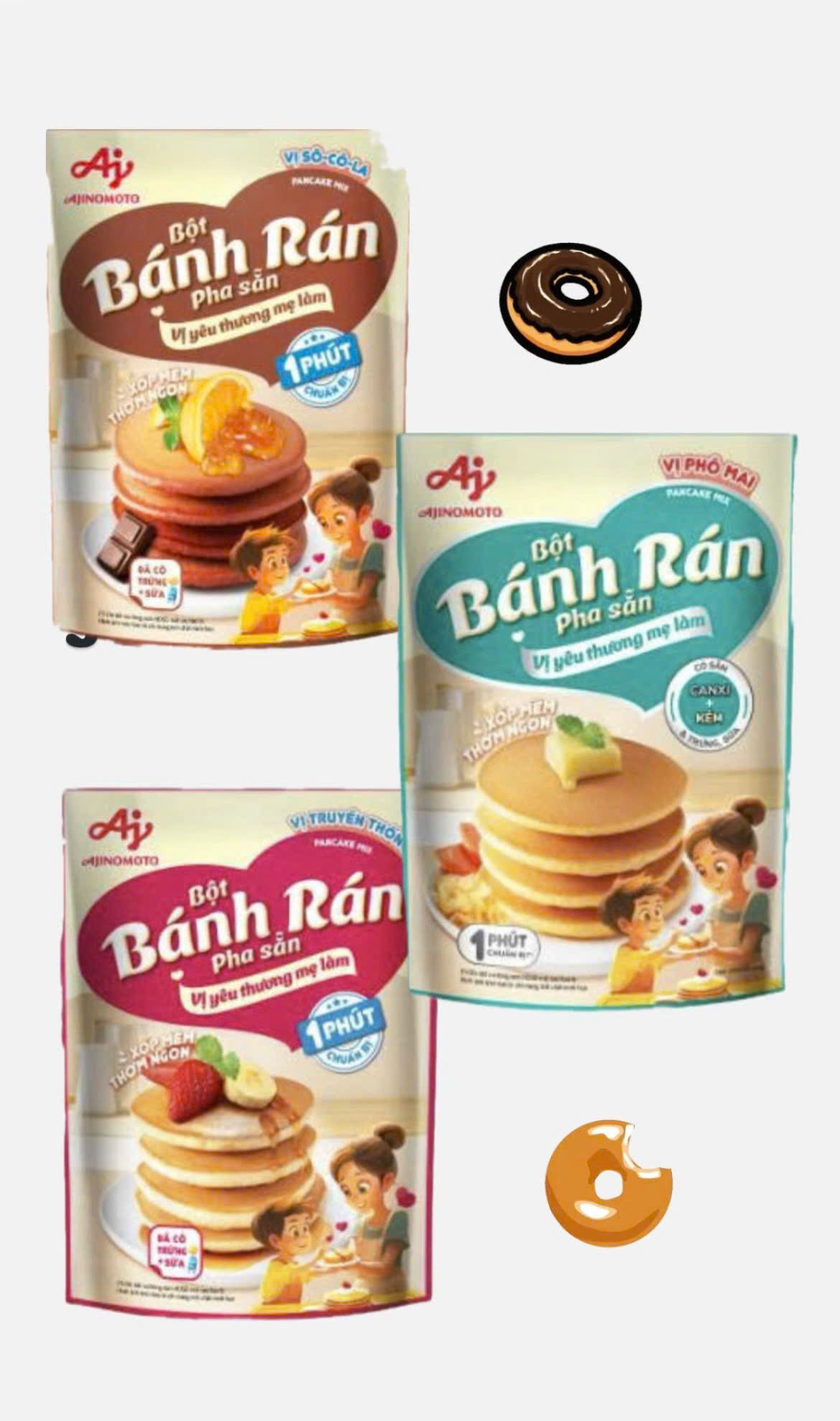 Việc tự tay làm ra những chiếc bánh thơm ngon cho cả gia đình luôn là niềm vui và hạnh phúc của các chị em phụ nữ. Nhưng với nhịp sống luôn bận rộn như hiện nay, việc này đôi khi trở nên không hề dễ dàng. Thấu hiểu được nhu cầu của người tiêu dùng, để giúp gia đình gắn kết với nhau hơn thông qua căn bếp yêu thương mà không tốn nhiều thời gian, Bột Bánh rán pha sẵn vị truyền thống, Bột bánh rán pha sẵn vị Sô-cô-la, và Bột bánh rán pha sẵn vị phô mai mang đến cho người tiêu dùng sự tiện lợi cùng những trải nghiệm tự làm bánh rán tại nhà thật dễ dàng và ngon miệng.