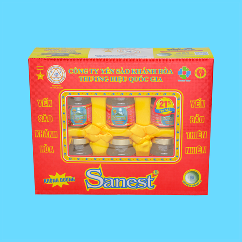 Nước Yến sào Khánh Hòa Sanest không đường có hàm lượng Yến sào 21%, là sản phẩm có giá trị bổ dưỡng, thích hợp cho mọi độ tuổi, phù hợp với người ăn kiêng.