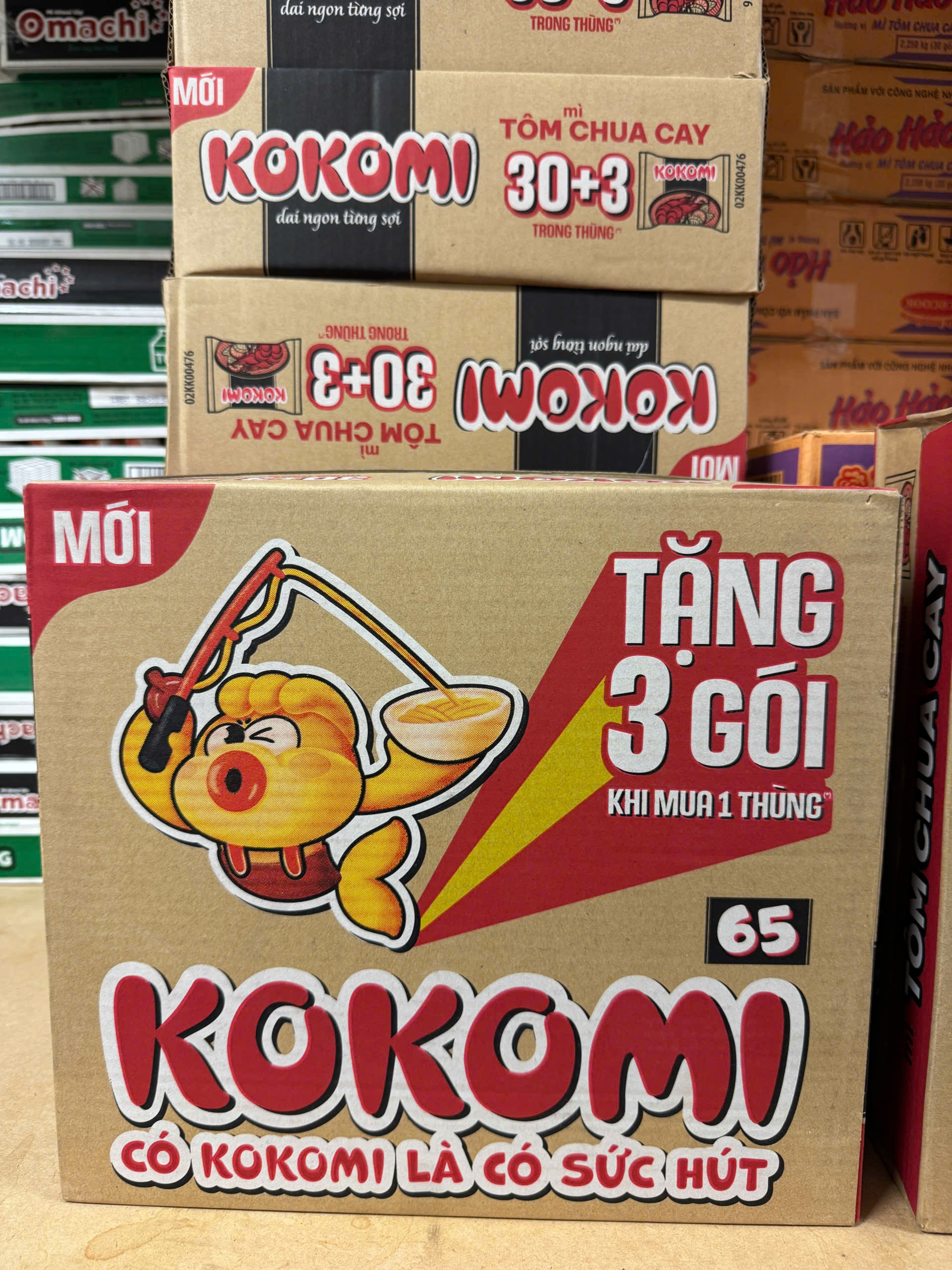 Thùng 30 + 3 gói mì Kokomi tôm chua cay 65g
