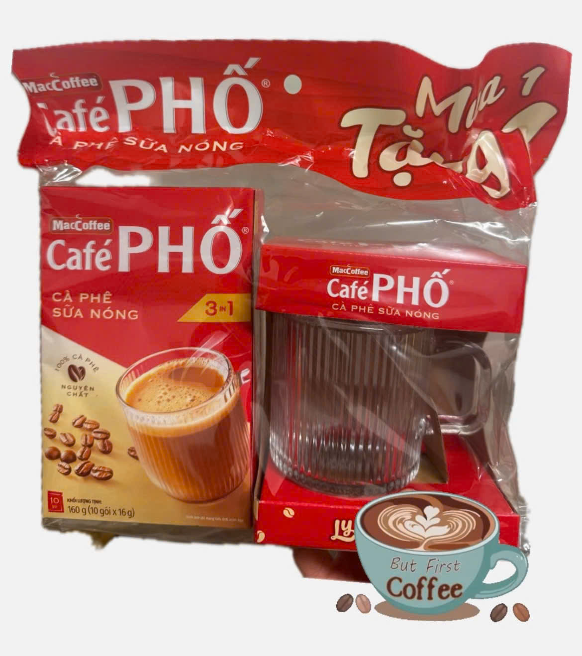 Cà phê Phố sữa nóng 3 in 1 tặng ly thuỷ tinh 160g